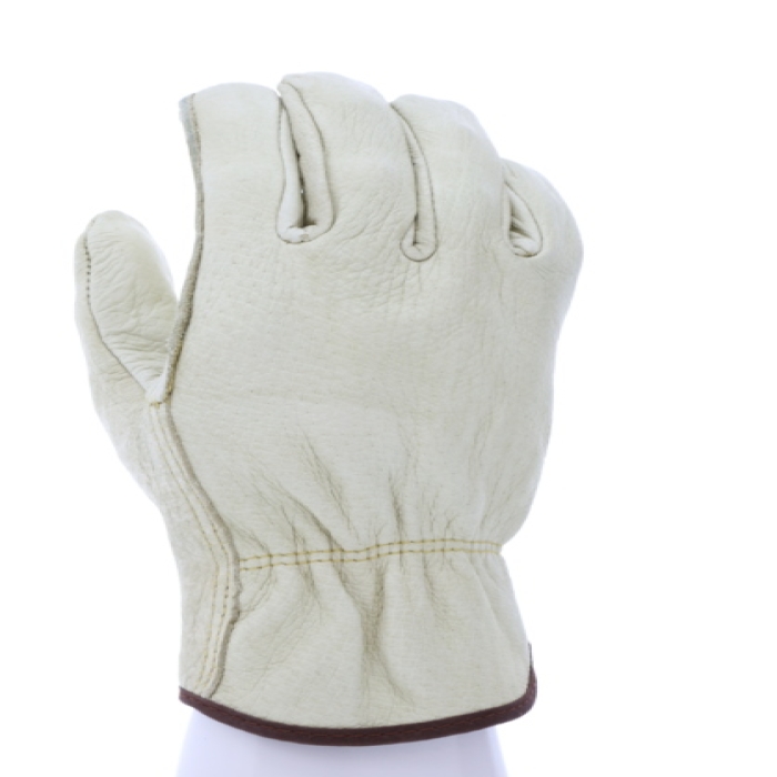 Pigskin gloves have excellent abrasion resistance. Offers greatest breathability because of the porous nature of the hide and becomes softer with use. Inherently retains natural softness after exposure to water. The 3400 features; Select Grade pigskin, straight thumb, and shirred elastic back.
